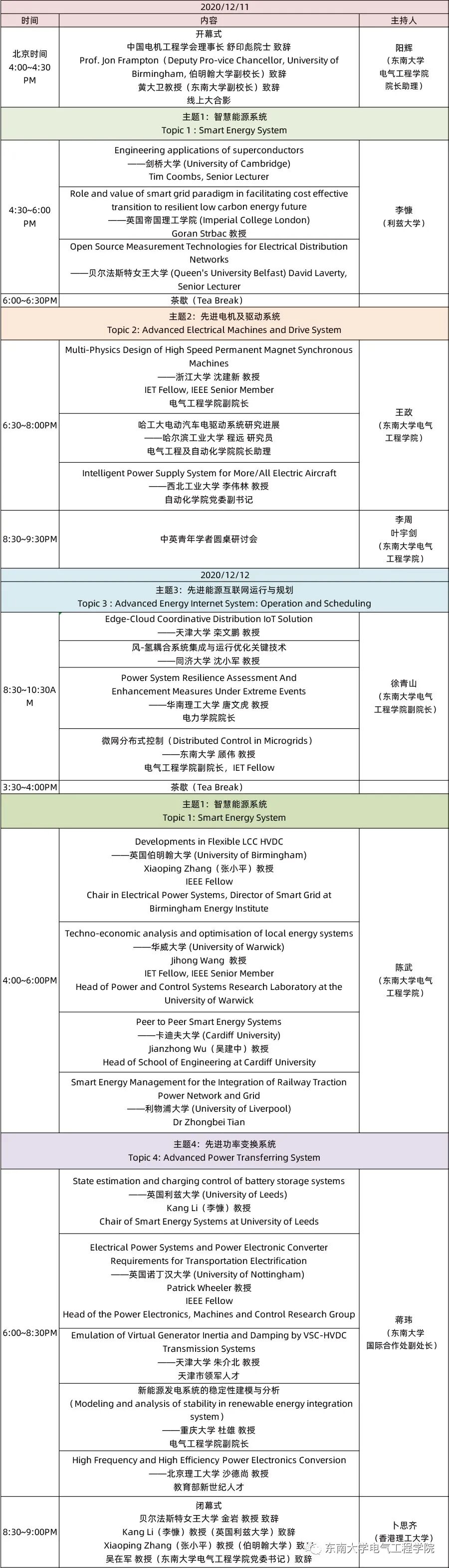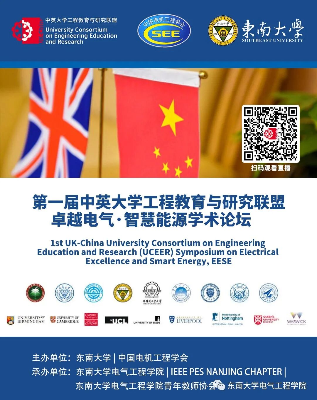第一届中英大学工程教育与研究联盟卓越电气·智慧能源学术论坛(1st UK-China UCEER Symposium on Electrical Excellence and Smart Energy, EESE)将于2020年12月11日至12日在线上举行,旨在面向国际国内重大需求凝练智慧能源与电气先进装备等方向的科学问题和发展方向,研讨本领域最新的研究进展以及目前面临的技术瓶颈与挑战,响应我国全球化智慧能源与电气装备统一发展战略,不断促进中英电气领域学者之间的学术交流与国际科技合作,拓宽国内电气领域学者的国际影响力。论坛将采用Webinar网络直播形式,中英双方教授将围绕智慧能源系统、先进能源互联网、电机系统与电力电子、先进电气装备等领域进行精彩报告。
