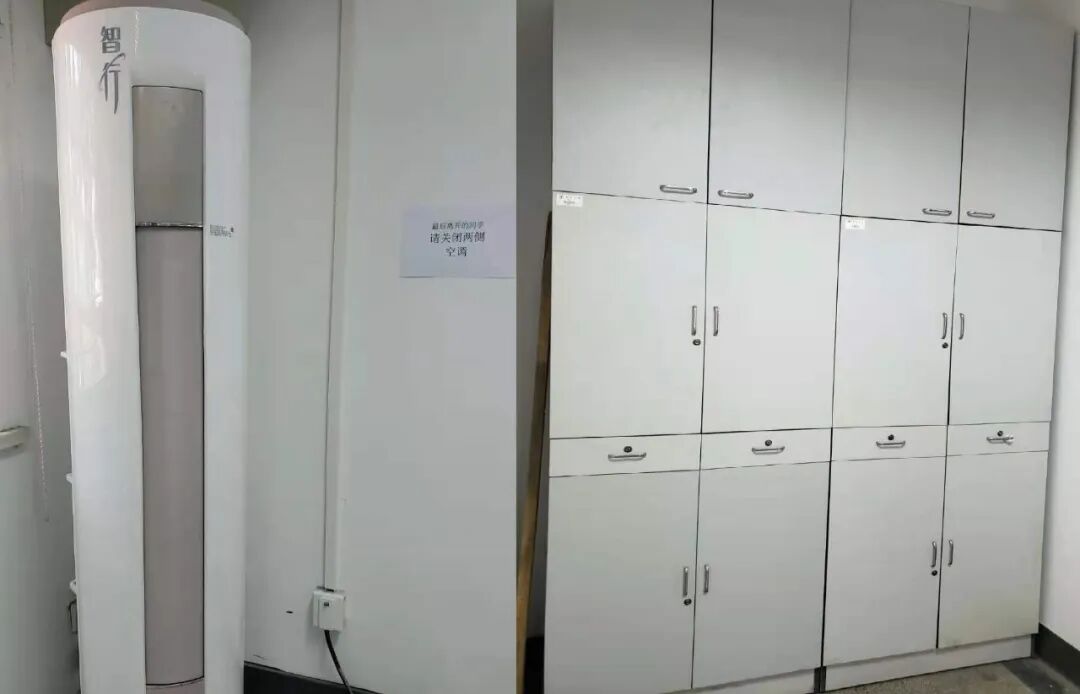 针对原先储物空间少,东西摆放杂乱的问题,学院配置了储物壁柜,使得零件和器材们都有了存放之所。另外还配置了两台大功率空调,极大地改善了同学们的实验环境,提高了科研效率。